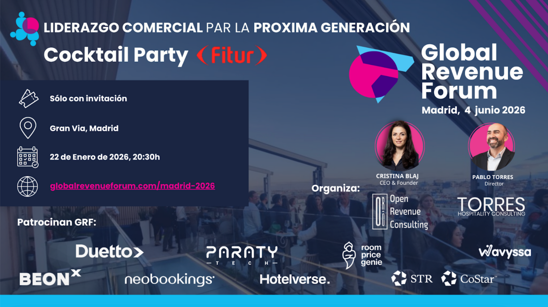 🎟️👉 Regístrate tu interés para la Fiesta Exclusiva FITUR – Global Revenue Forum Madrid 2026: madrid@globalrevenueforum.com