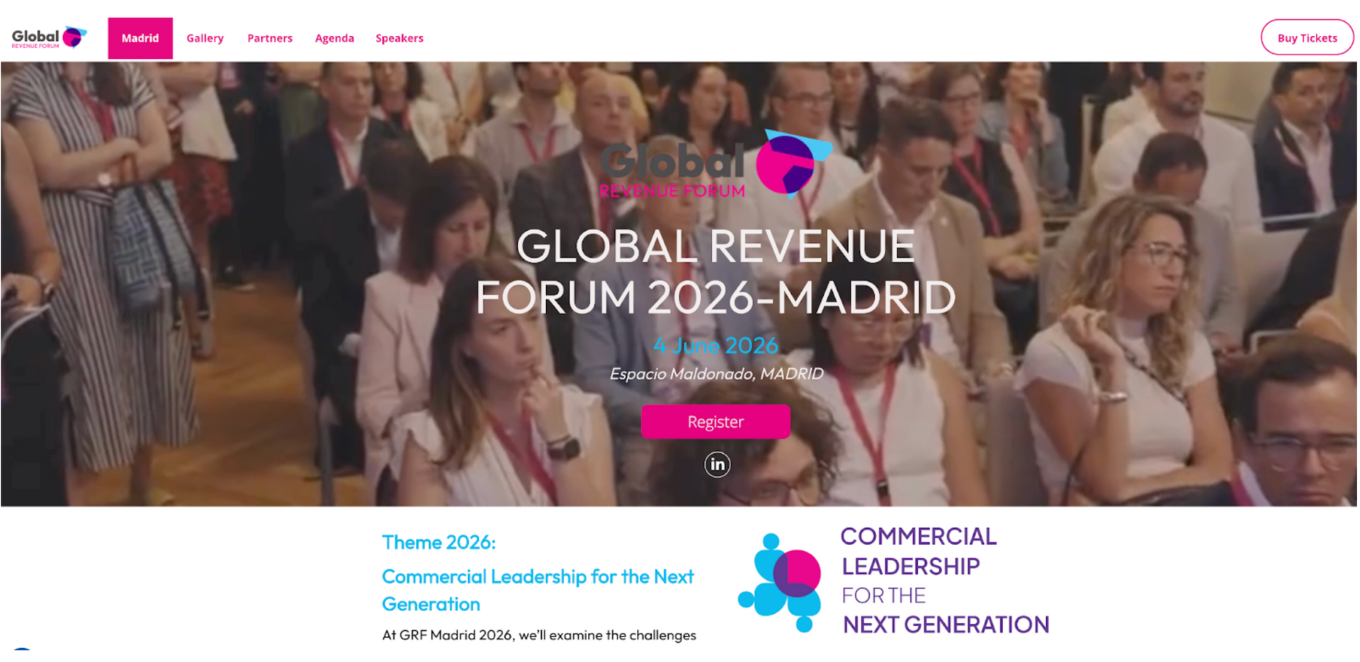 La web del Global Revenue Forum Madrid 2026 ya está activa con toda la información sobre el programa, los speakers y las oportunidades de participación.