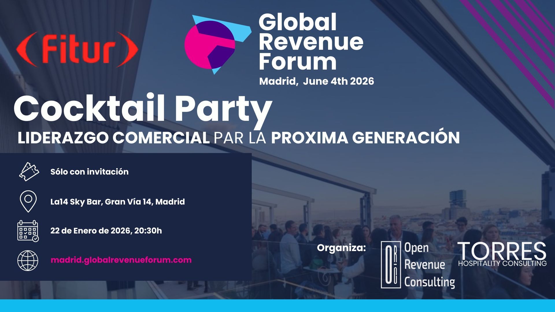 Como parte de las actividades paralelas al evento, el Global Revenue Forum Madrid celebrará una cocktail party exclusiva durante FITUR, dirigida a patrocinadores y partners estratégicos.