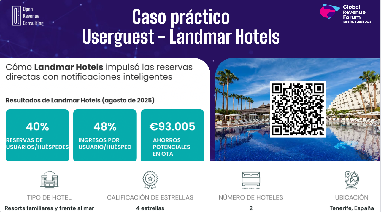 En el último webinar El impacto de la Ia y del nuevo enfoque de Google en la venta directa de los hoteles organizado por Open Revenue Consulting de la mano de su CEO Cristina Blaj ( Consultora y Embajadora de marca de Userguest en España, como también la co-organizadora del Global Revenue Fórum Madrid (con su próxima edición 4 de junio de 2026), se han reunido expertos de referencia: Daniel Romero (Director de Partnerships y Comunicaciones en ParatyTech), Francisco Quintero (Director de Ventas y Marketing en Landmar Hotels) y Alejandro Ruiz (Travel Account Manager en Google).